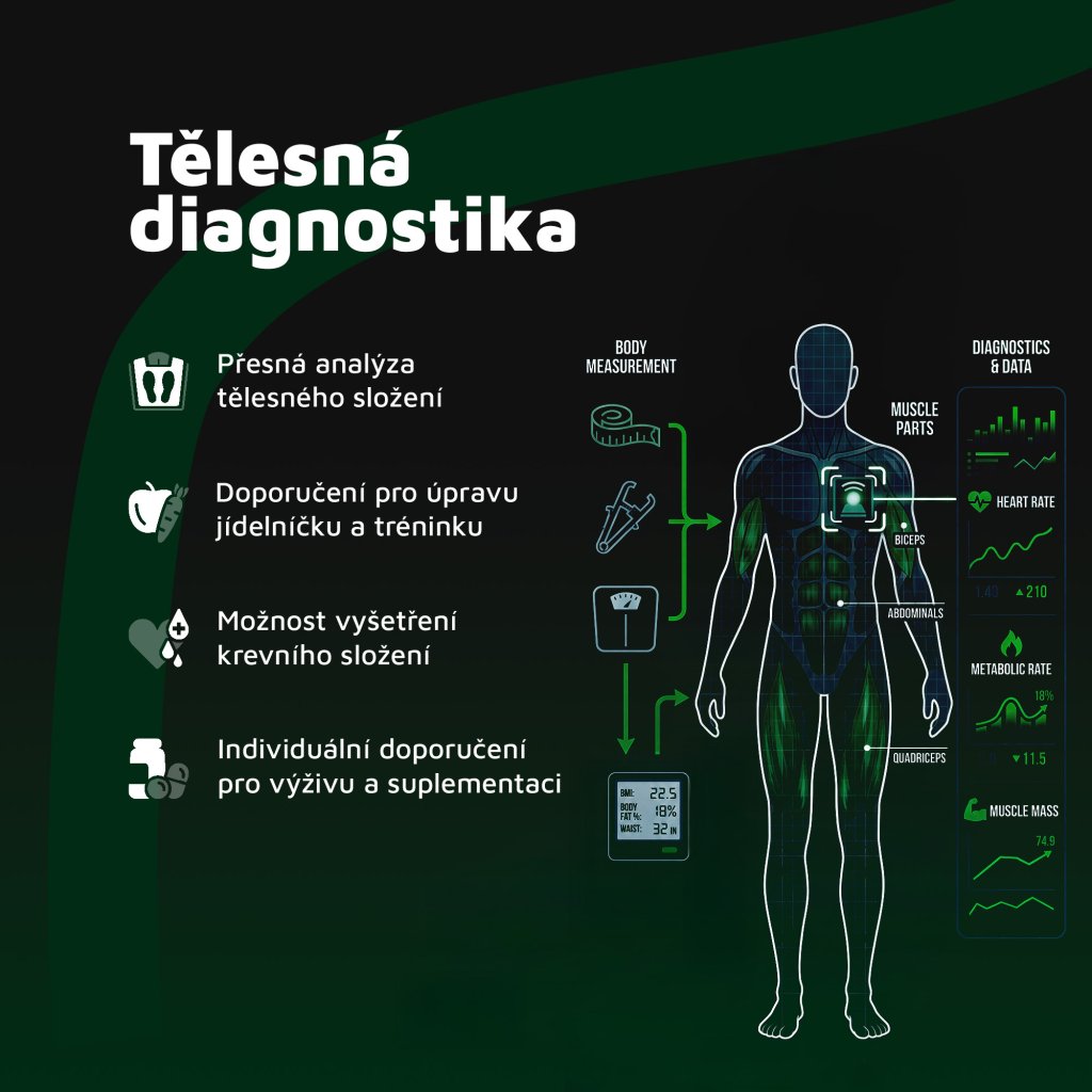 We will find out the total weight, muscle mass, fat mass, amount of water and its distribution in the body, basal metabolic rate, amount of minerals in the body including bone minerals, balance of individual body segments. This baseline measurement also includes an evaluation and comparison with previous measurements.