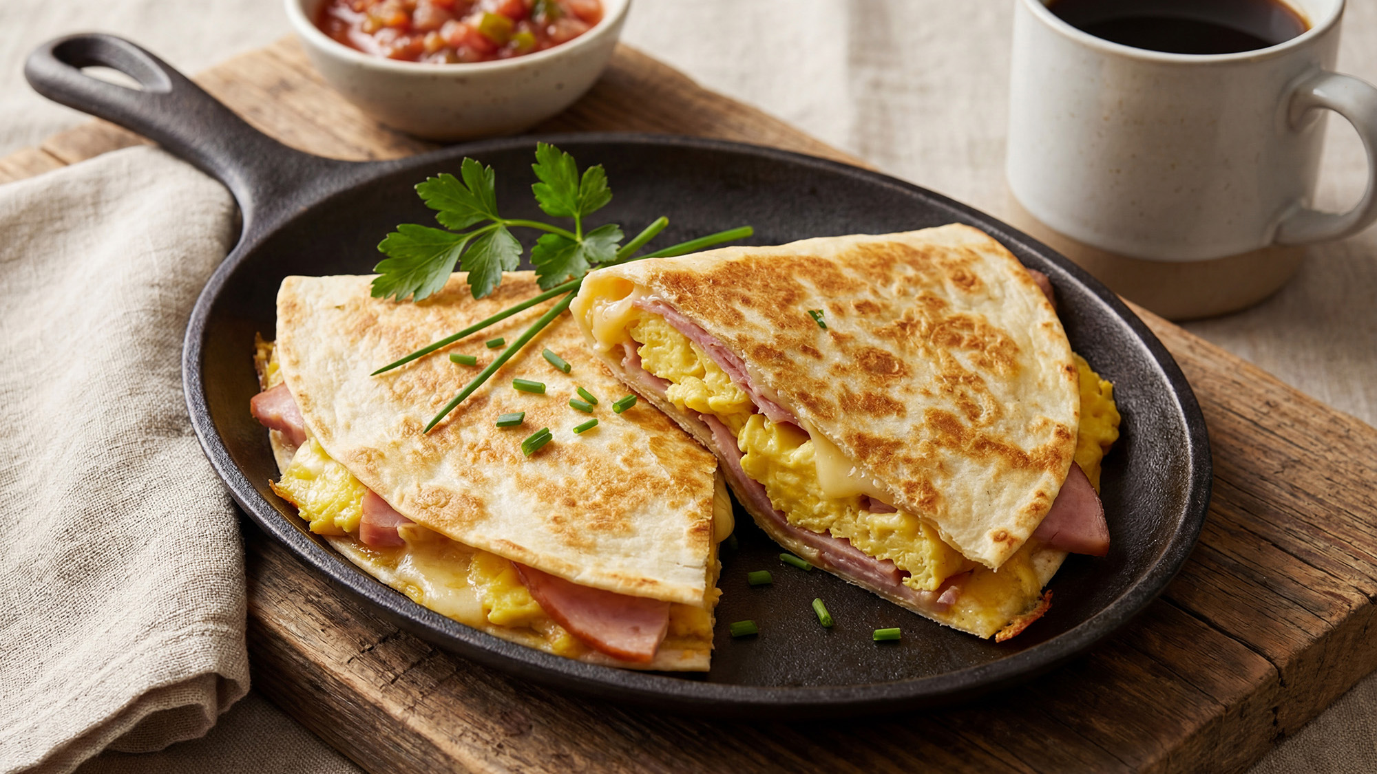 Tortilla se šunkou a sýrem a vejcem